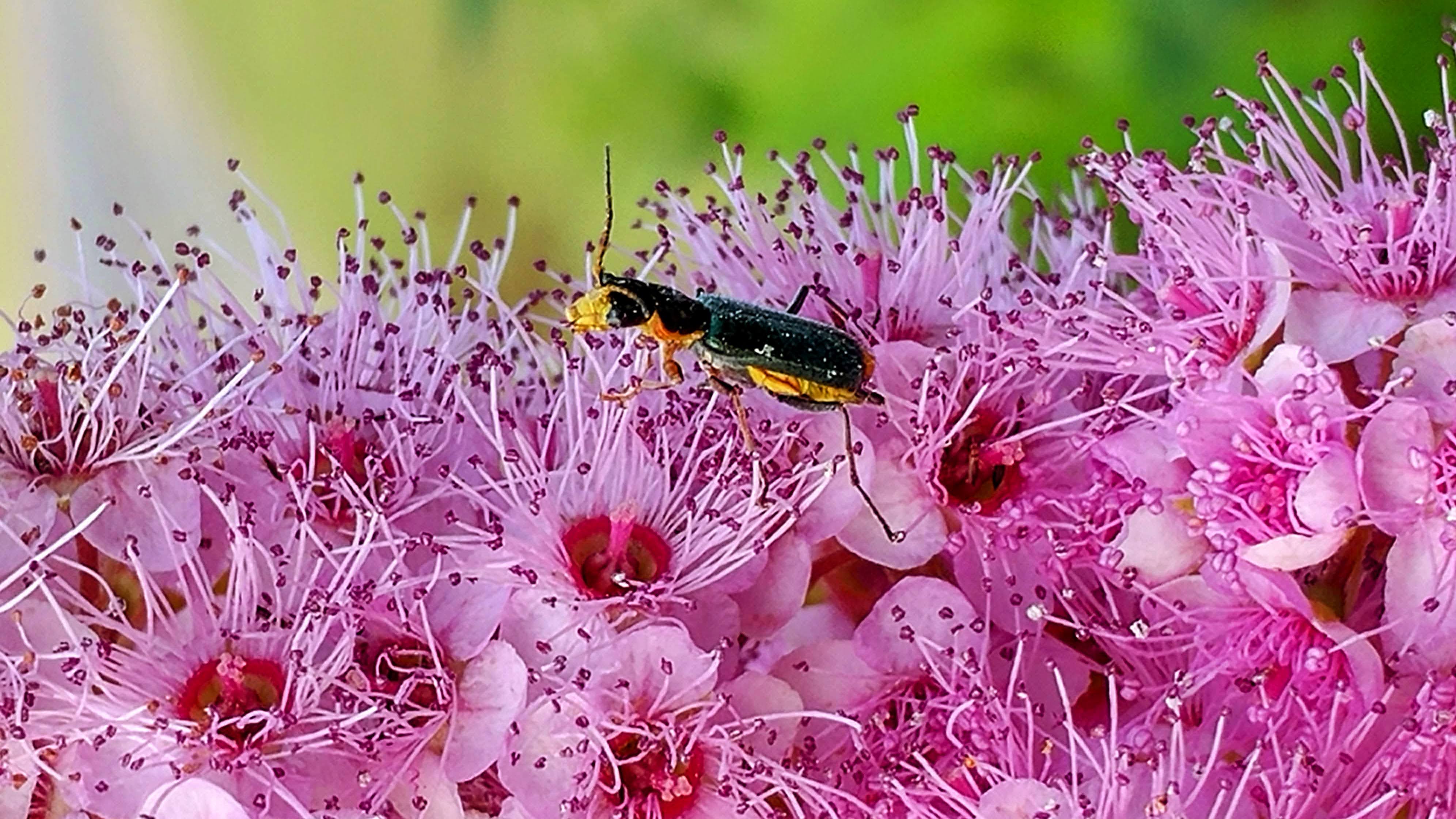 [옛사진] 꼬리조팝나무 꽃의 노랑무늬의병벌레 (Malachius prolongatus) (추정)