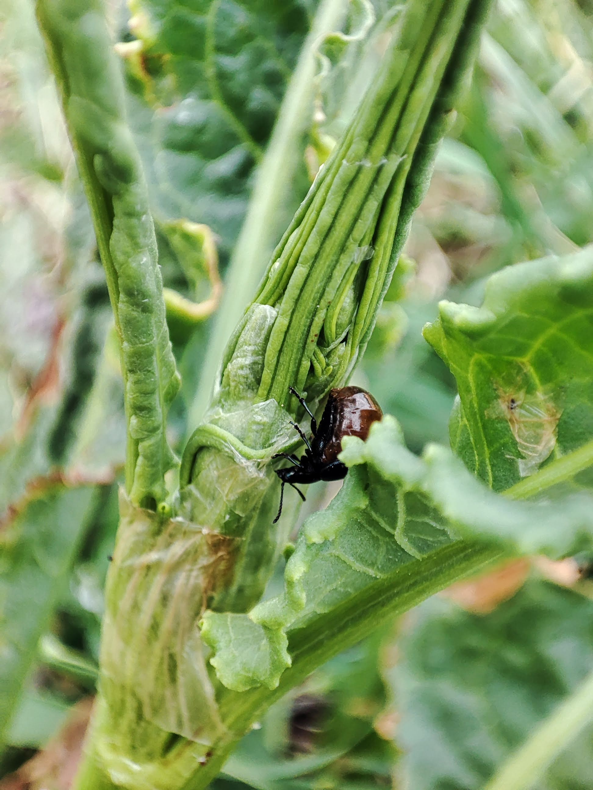 소리쟁이 잎의 좀남색잎벌레 (Gastrophysa atrocyanea)