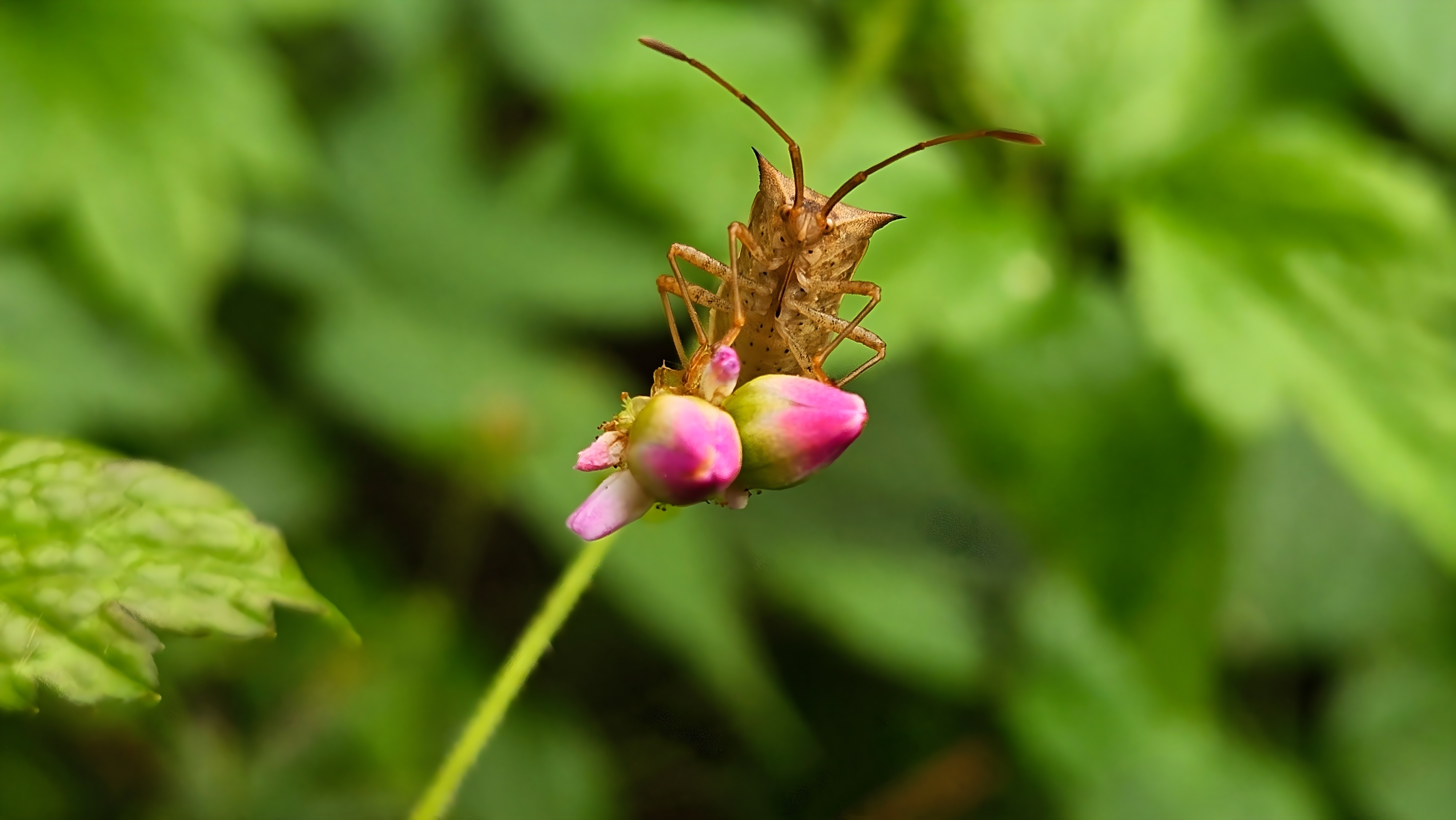 가시덩굴여뀌 꽃의 우리가시허리노린재 Cletus schmidti