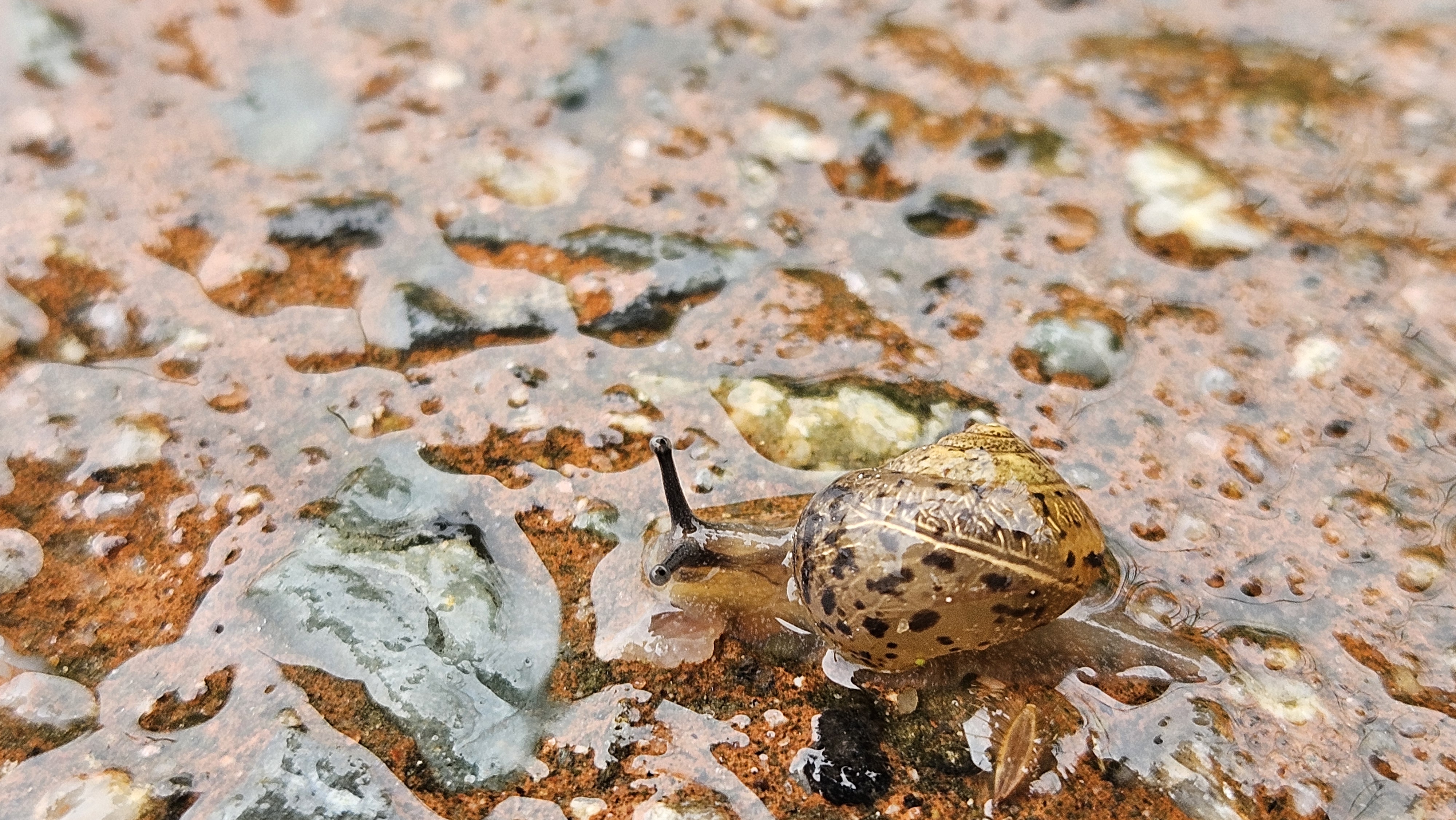 달팽이의 우중 산책... 명주달팽이 (Acusta despecta)