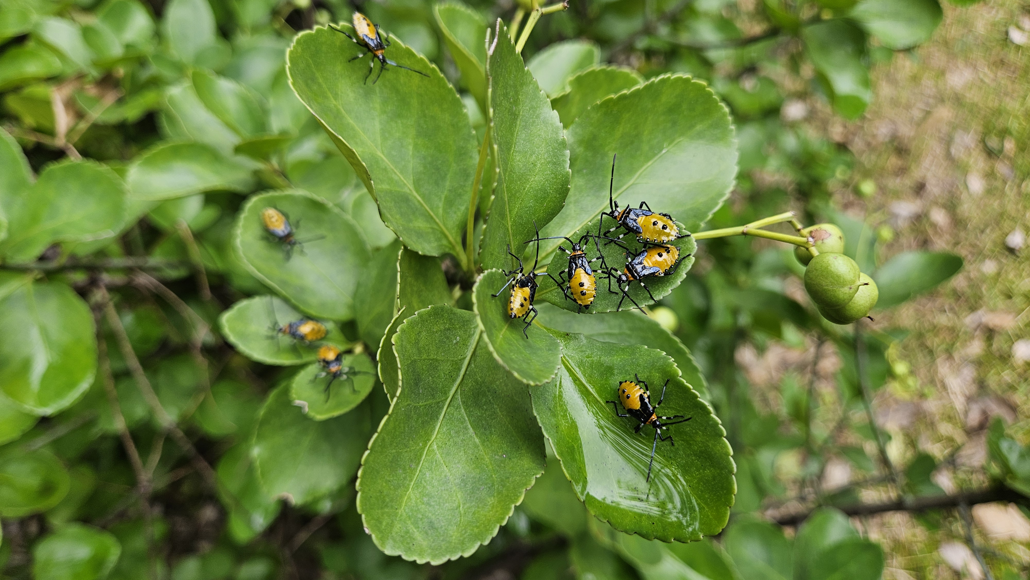 | 제목: | 사철나무 잎의 노랑배허리노린재 (Plinachtus bicoloripes) (약충)
