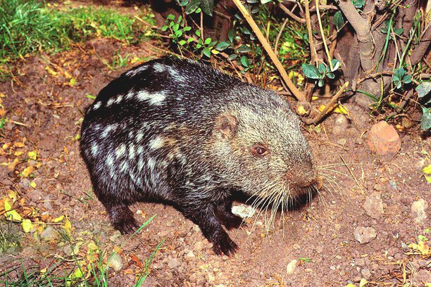 The body of a pacarana is very like that of a porcupine - without the spines. It is a heavily-built, rather clumsy inhabitant of the forests on the eastern slopes of the Andes. Pacaranas are rather elusive, and at one time they were thought to be extinct. They are still hunted, however, and their meat is considered a delicacy. |