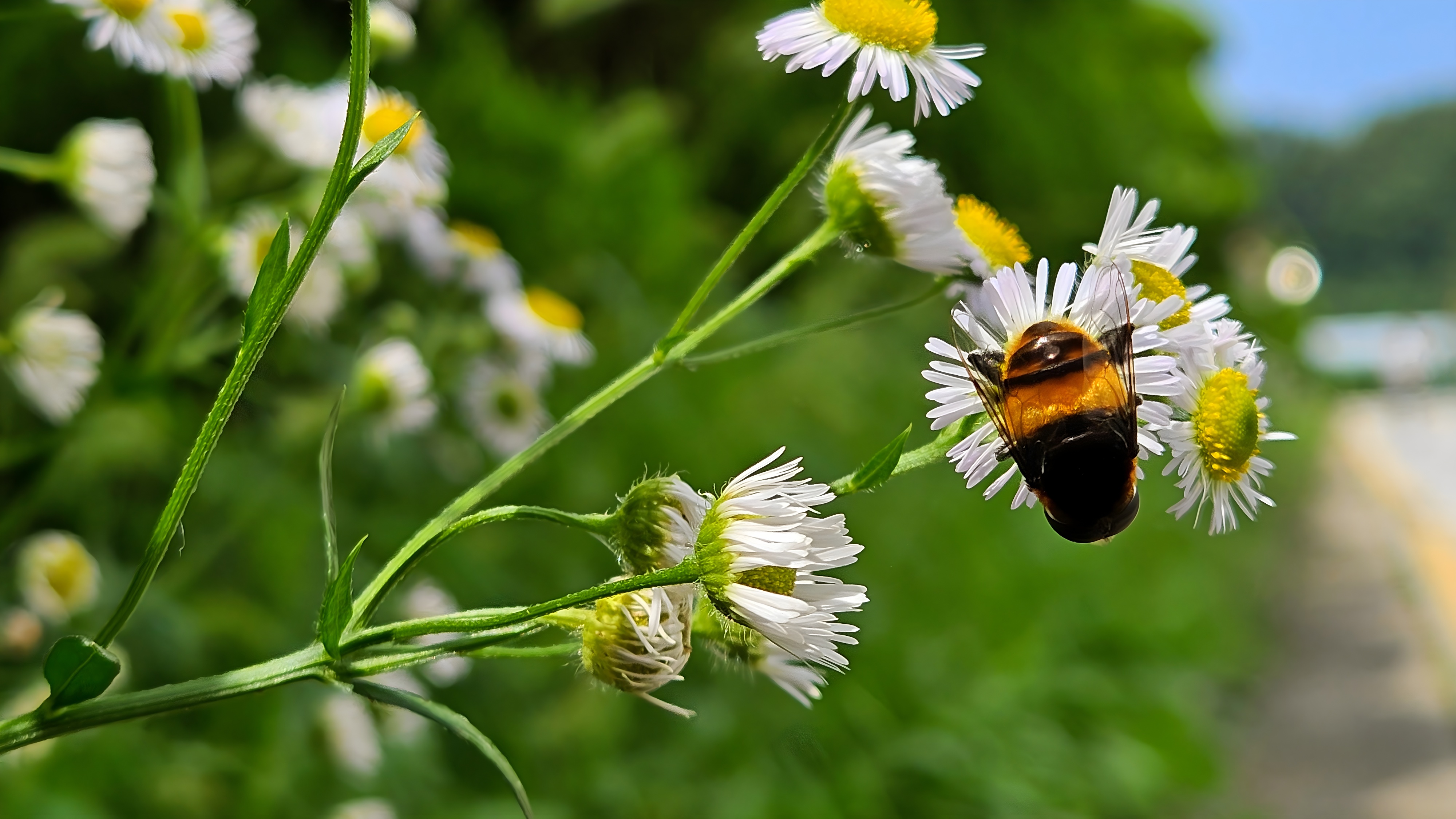 개망초 꽃의 왕꽃등에 (Phytomia zonata)