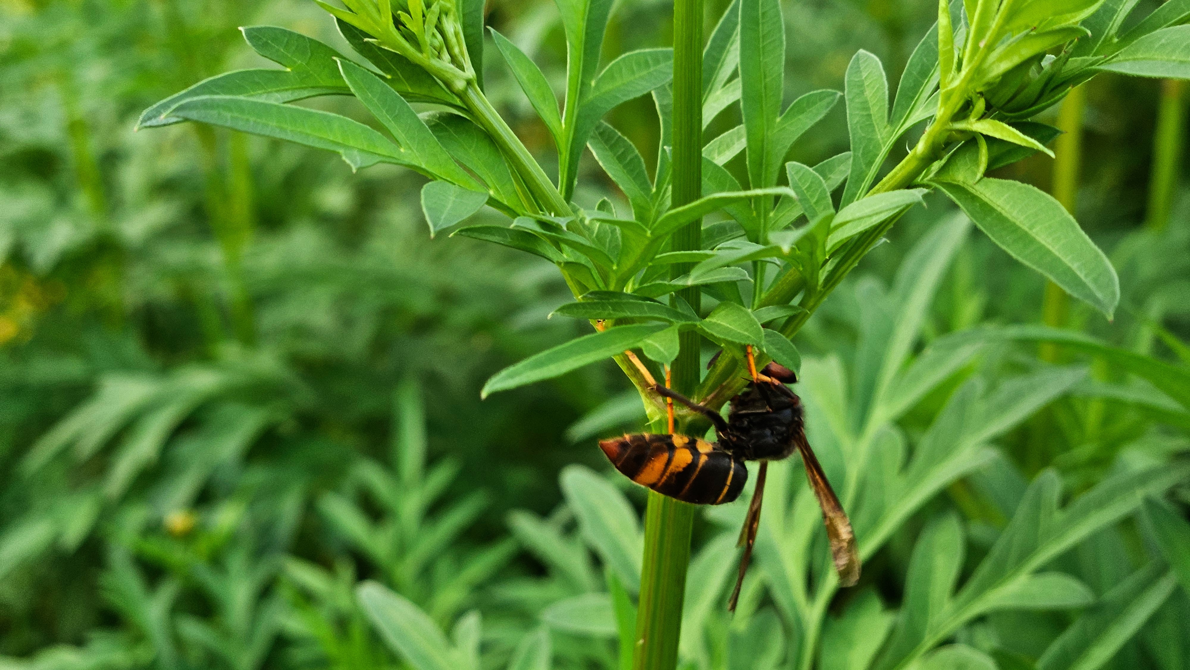 등검은말벌(Vespa velutina)은 꿀벌을 주먹이로 사냥하는 아시아 원산의 외래종으로, 한국에는 2003년 부산항을 통해 유입되어 전국적으로 확산되었습니다. 크기는 일벌 기준 22~25mm이며, 노란색 더듬이와 흑색 머리 및 가슴, 연한 주황색~황갈색 복부 등 외형적 특징을 가집니다. 토종 말벌과의 경쟁, 양봉꿀벌의 사냥으로 인한 양봉농가 피해, 도시 환경 적응력 및 번식력으로 인한 주민 피해가 심각한 생태계 교란종입니다.