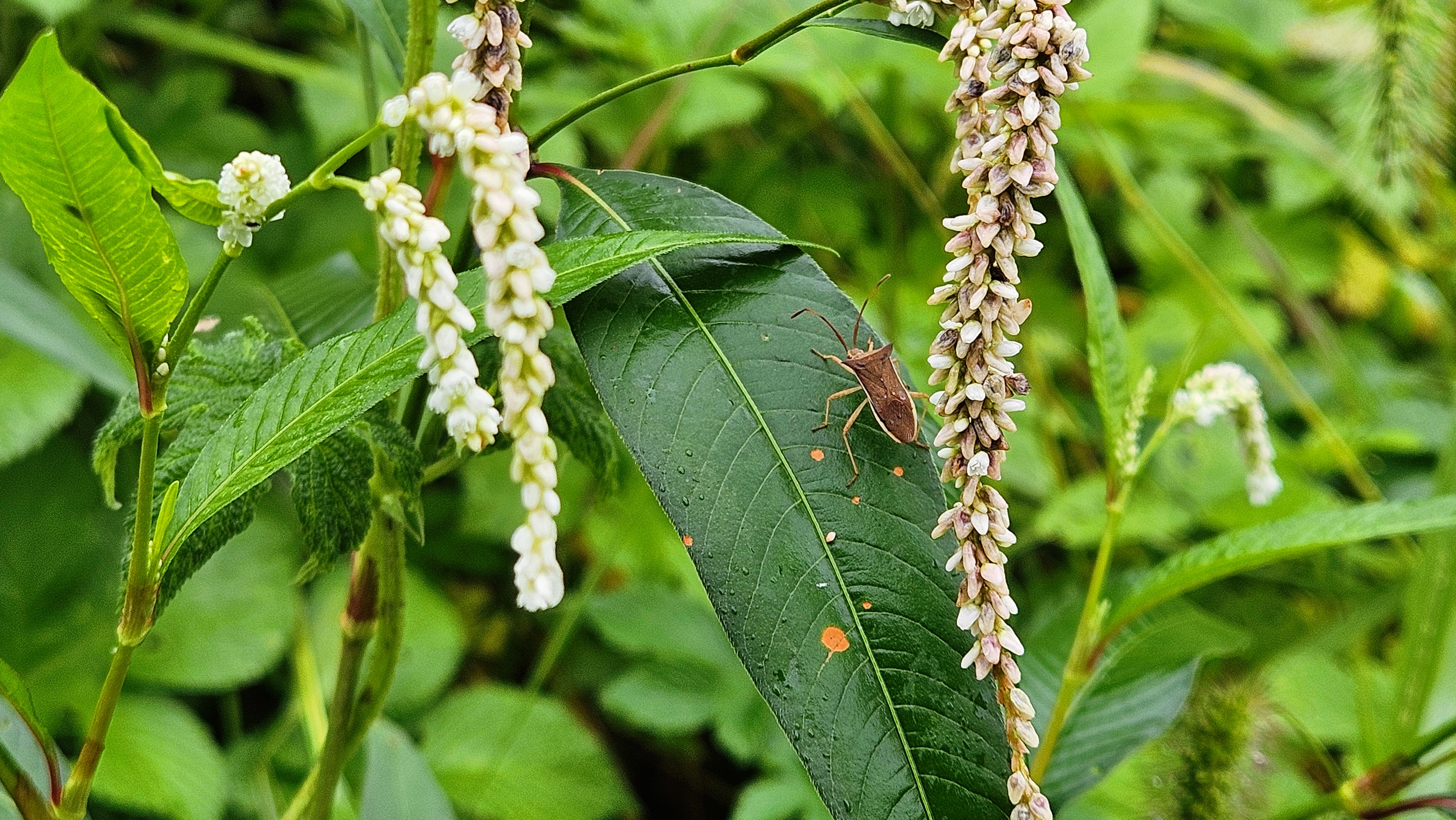 흰여뀌 꽃과 우리가시허리노린재 (Cletus schmidti)